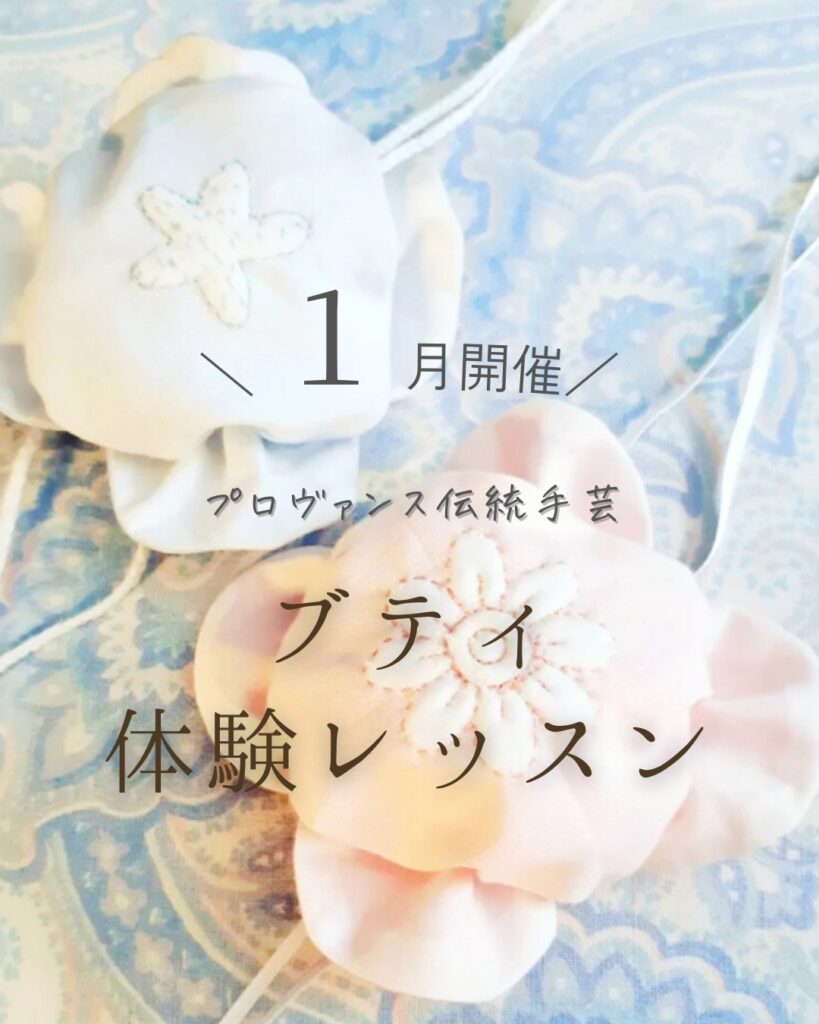 1月 体験会のお知らせ|南仏伝統手芸「ブティ」初心者向けワークショップ《ミニ巾着づくり》