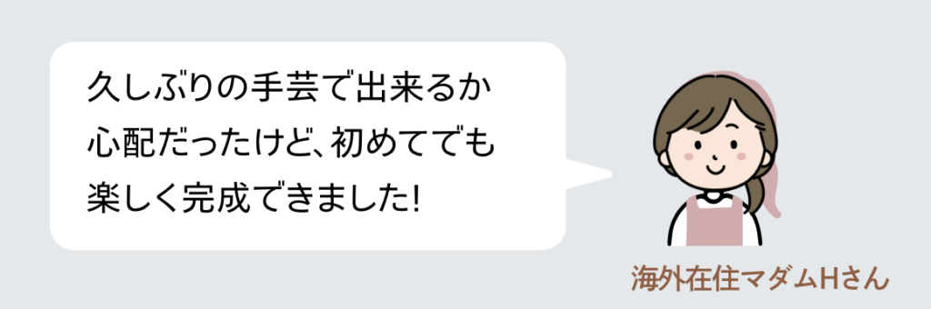 シンプルなステッチだけで仕上がるので、初めての方も気軽に挑戦できます。